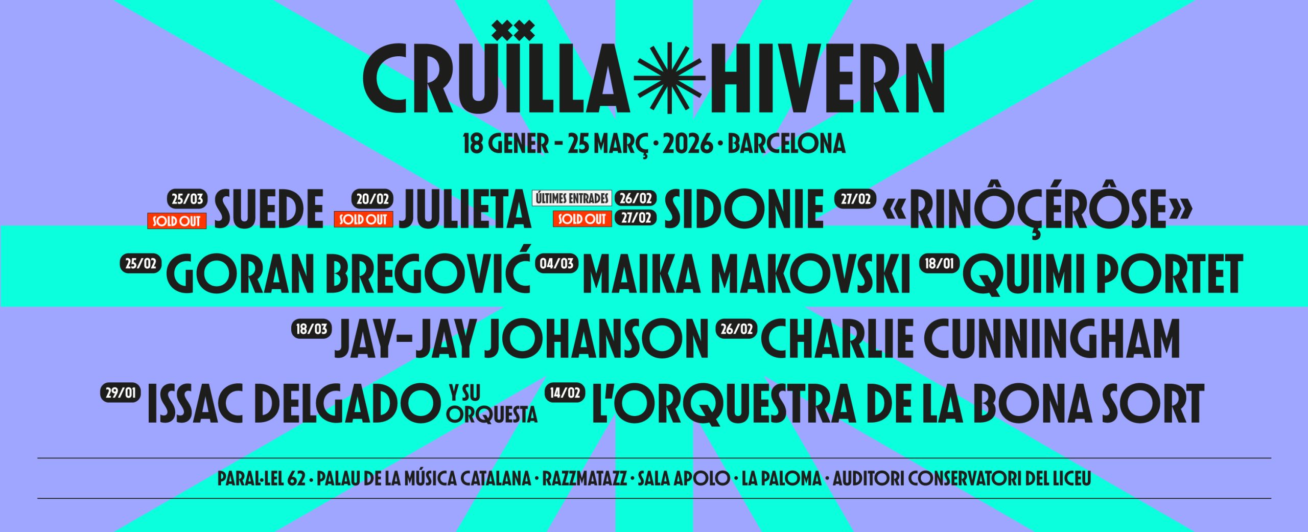 Un cicle per recuperar la calor corporal a base de salts a la pista, coreografies improvisades i el contacte amb la resta de desconeguts que, quan acabi el concert, ja ho seran menys, però també per conservar intacta la flama que ens manté addictes a la música en directe. El Cruïlla Hivern esdevindrà l’excusa perfecta per començar l’any amb força i farcirà aquesta estació dels plans ideals per a regalar-nos a nosaltres mateixos o a les persones que estimem: els concerts dels grups locals, nacionals i internacionals del moment.