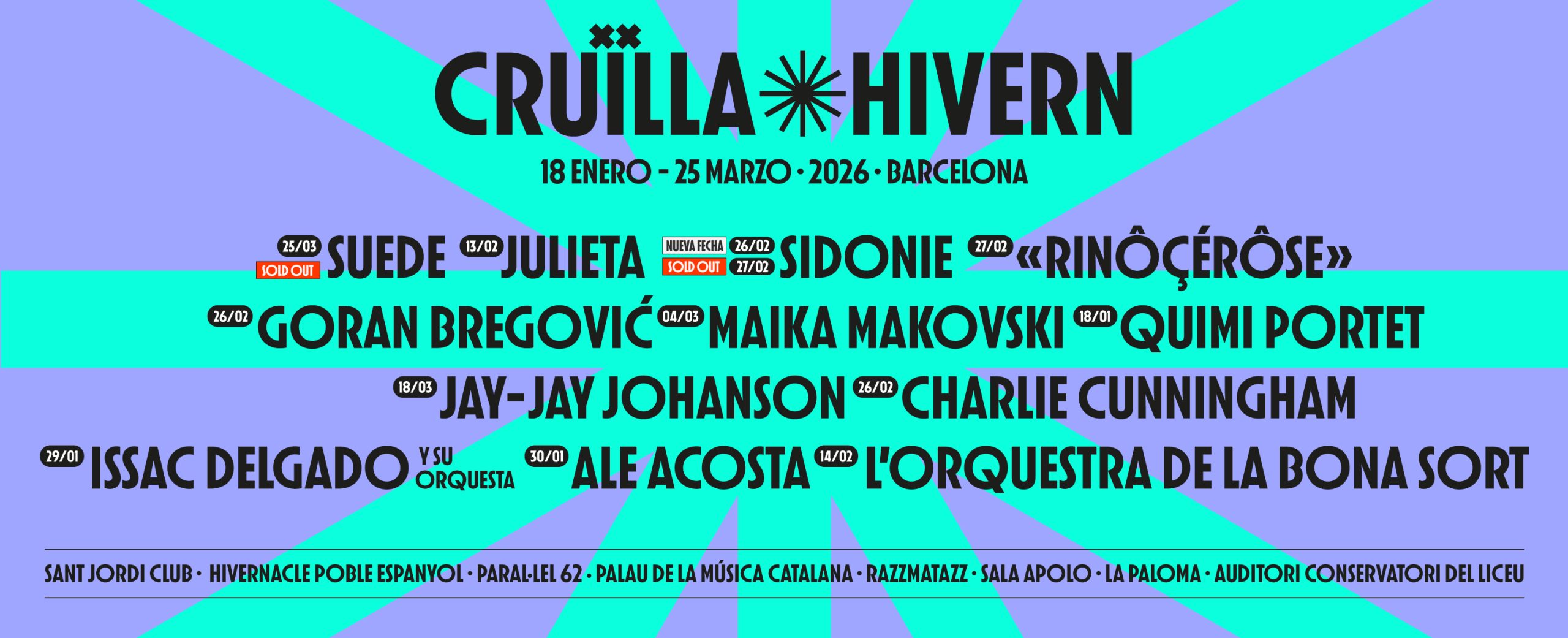 Cada invierno el frío se instala en nuestras vidas sin preguntar, convirtiendo el Festival Cruïlla en un recuerdo más lejano que nunca, ya sea por el tiempo que ha pasado desde la última edición como por el que falta para que se celebre la siguiente. En 2024, no obstante, el ciclo de conciertos Cruïlla Hivern se sumó a la fiesta que, en realidad, caracteriza esta edición: la llegada de los Reyes Magos, la celebración del Carnaval y, desde entonces, ¡también el Cruïlla Hivern!